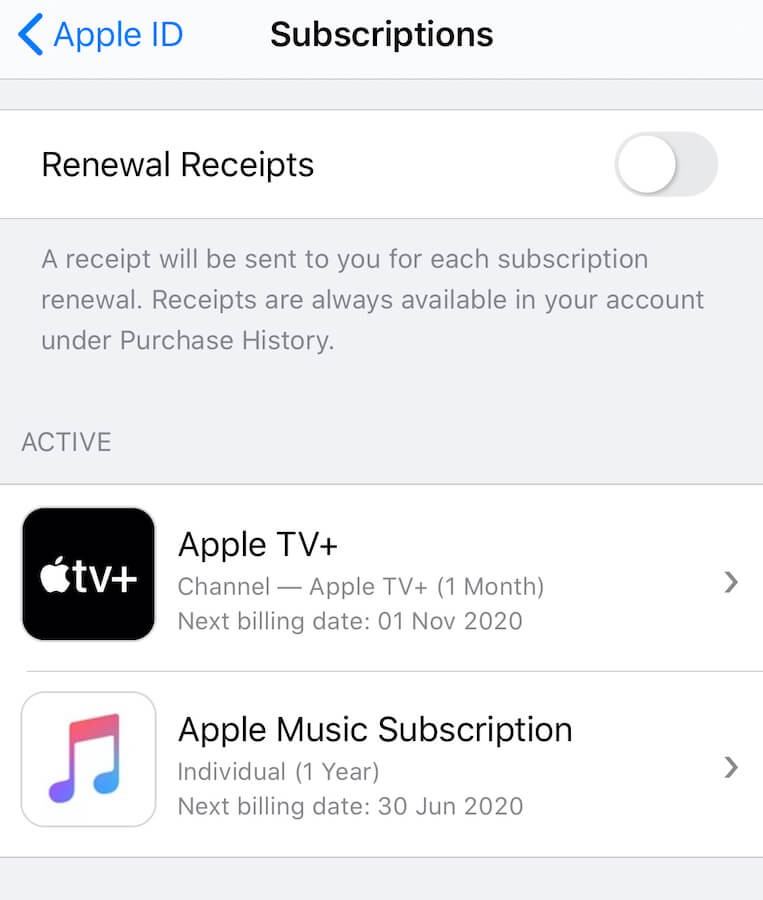 You'll now see all the subscriptions you have with Apple for their services or any app subscriptions that you've set up.