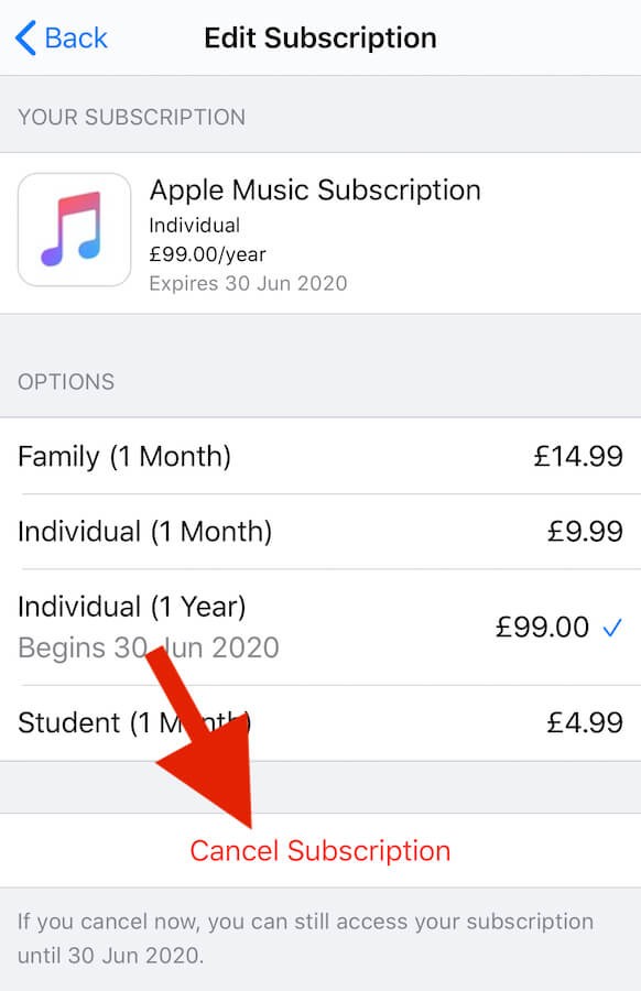 If you would like to cancel any subscriptions, simply tap the Cancel button at the bottom of the screen and you won't be billed for that service any longer but please do remember that you'll lose access to that service on the date listed under the Cancel button.