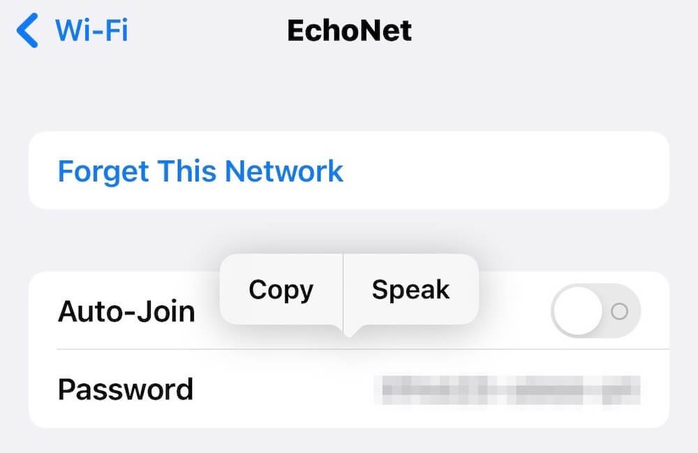 You can now tap on the Password field, and after authenticating with Touch ID, Face ID or your iPhone passcode, you can see the password and copy it or get the iPhone to read it out for you.