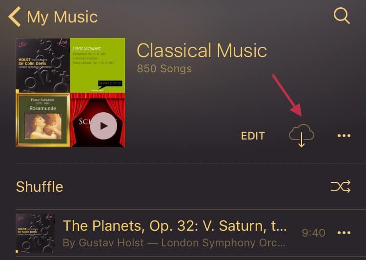 To download an entire playlist, tap on My Music and then find the playlist that you want to download. Once you have it open, simply tap on the download icon and all the music in that list will be stored locally on your phone.