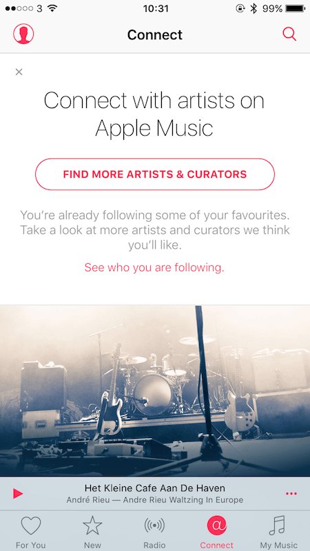 The Connect option allows you to follow your favourite artists on Apple Music and keep up to date with their new music and updates from them. It's a similar concept to following someone on Twitter or Facebook, but allows you to hear all their new music as soon as it's released.