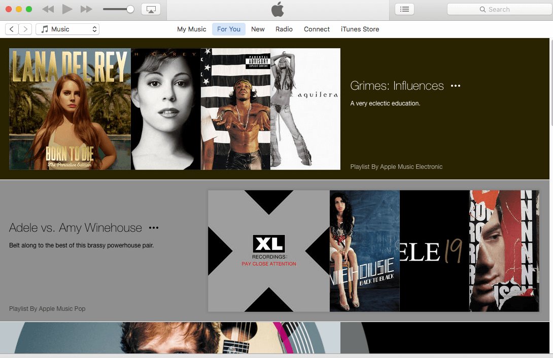 Using Apple Music in iTunes on your desktop or laptop is very similar, once you open iTunes, you have the same options as the mobile version listed across the top of the screen.