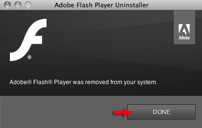 Finally, click on Uninstall on the Adobe Flash Player uninstaller and then just just on Done when the uninstall is complete.