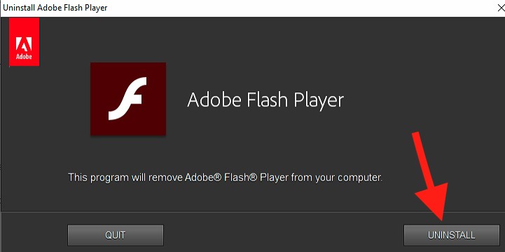 Adobe Flash uninstaller directly from Adobe at this link here.Once you've downloaded the uninstaller, double click to run it and then click on Uninstall and close any web browsers you have open.
