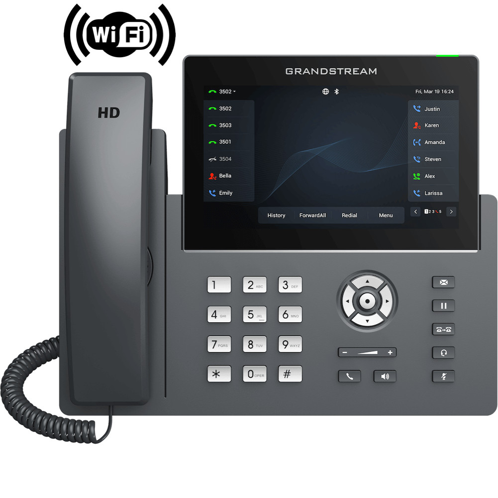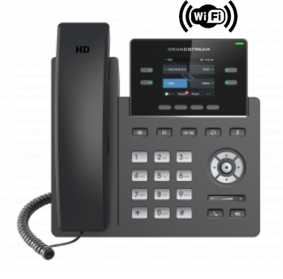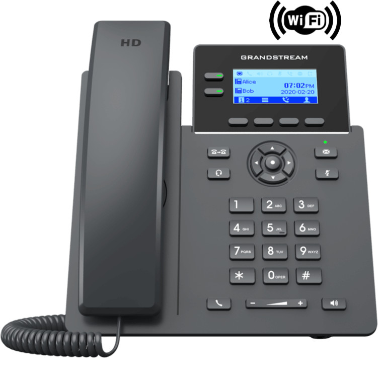 ![]() | Grandstream GRP2602W WiFi Phone The Grandstream GRP2602W is a high quality carrier grade VoIP phone, delivering all the functions of an office phone, and can support 2 lines, and includes built-in WiFi. No need to be near a network socket! Enterprise-level protection including secure boot, dual firmware images and encrypted data storage Call hold, transfer, forward and mute, speakerphone. HD Audio. 2 virtual multi-purpose keys Headsets are available. Mains adaptor included with this WiFi model £75+vat fully configured and managed In-stock ready to go! |